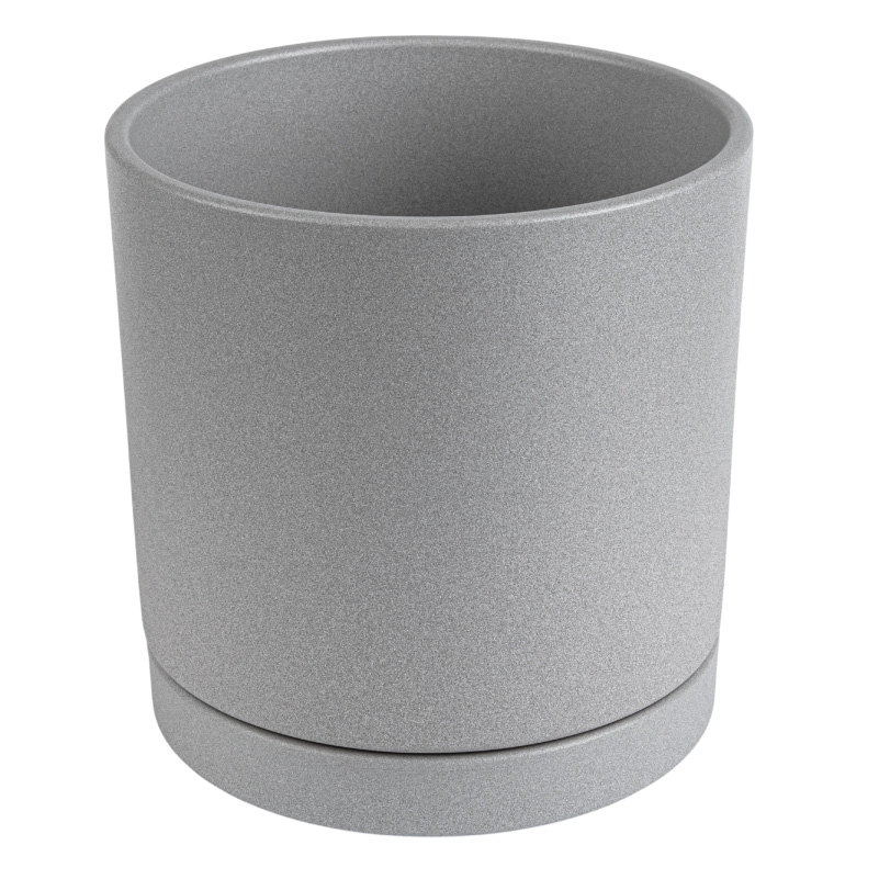 Elegancka donica w nowoczesnym, cylindrycznym kształcie, która doskonale współgra z podstawką.